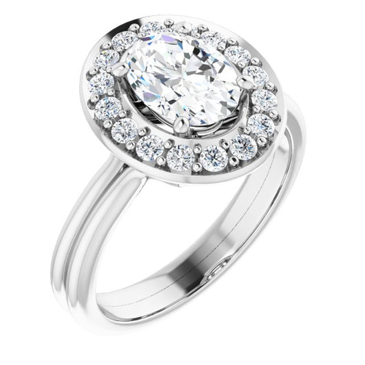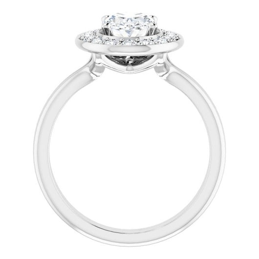 10K White Gold Customizable Cluster-Halo Accented Oval Cut Style with Tapered Dual Band