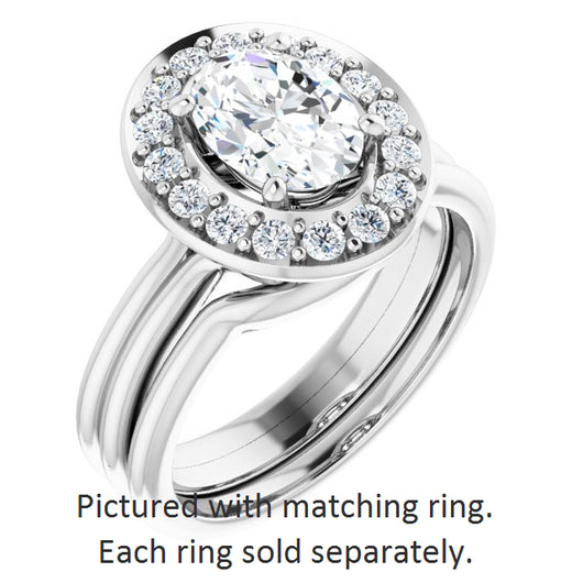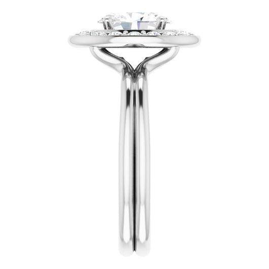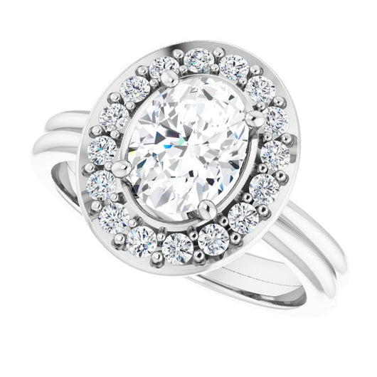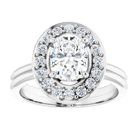 Platinum Customizable Cluster-Halo Accented Oval Cut Style with Tapered Dual Band