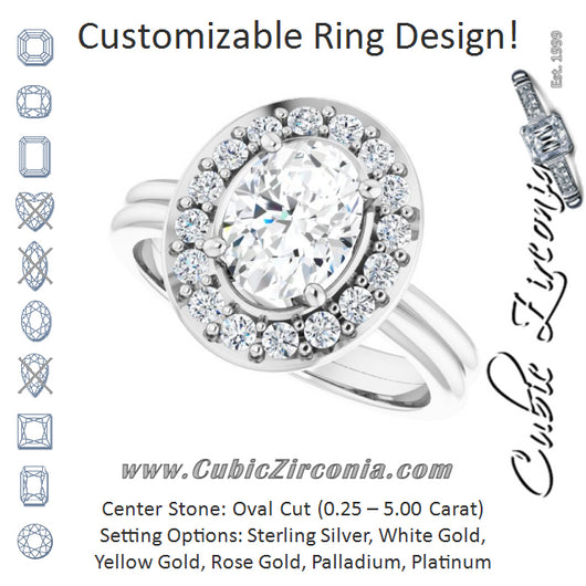 Cubic Zirconia Engagement Ring- The Gretchen (Customizable Cluster-Halo Accented Oval Cut Style with Tapered Dual Band)