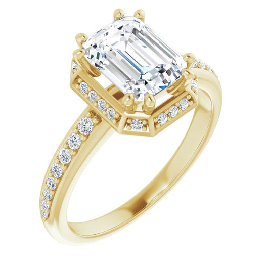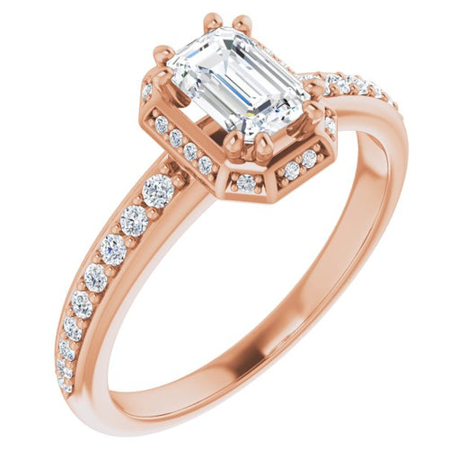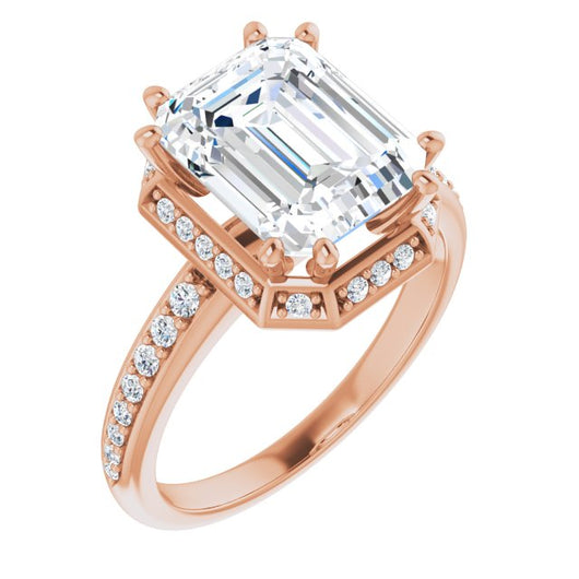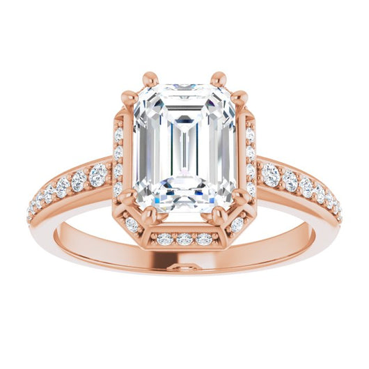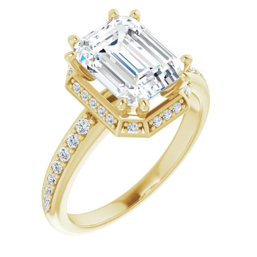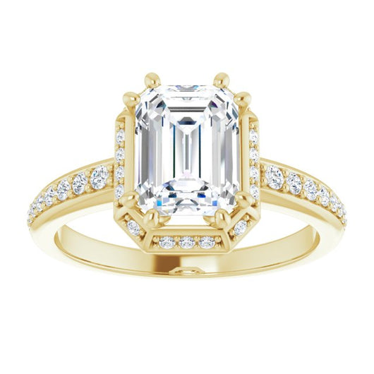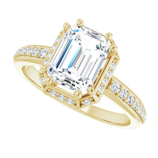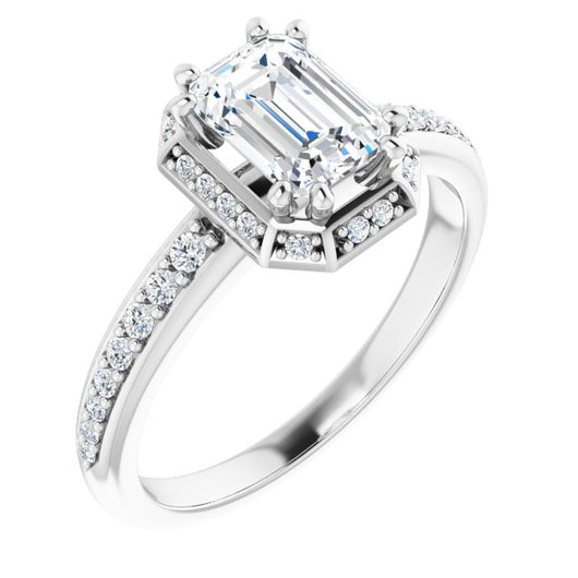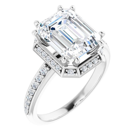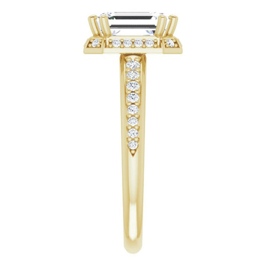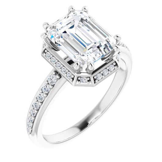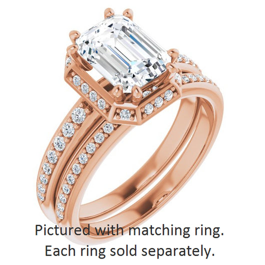 Center Stone Shape: Radiant Cut (as pictured with Emerald Cut). See this customizable ring set with other available center stone shapes here: customize setting.