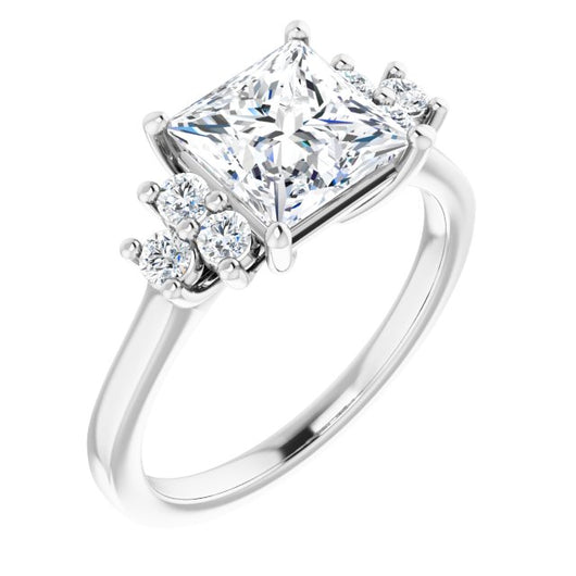 10K White Gold Customizable Princess/Square Cut 7-stone Prong-Set Design
