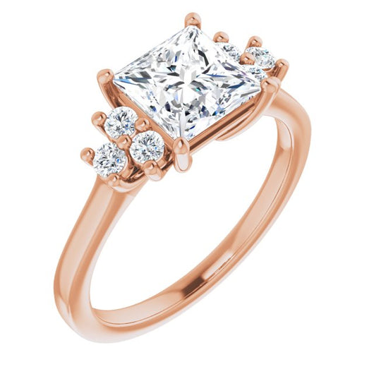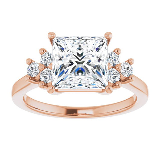 10K Rose Gold Customizable Princess/Square Cut 7-stone Prong-Set Design