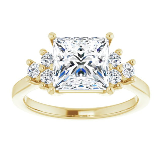 10K Yellow Gold Customizable Princess/Square Cut 7-stone Prong-Set Design