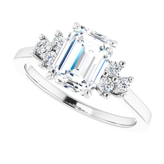 10K White Gold Customizable Emerald/Radiant Cut 7-stone Prong-Set Design