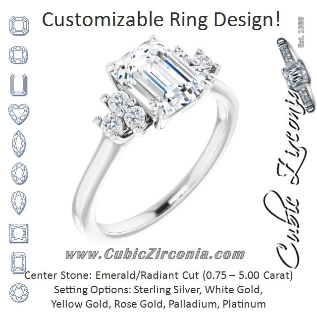 Cubic Zirconia Engagement Ring- The Gwendolyn (Customizable Radiant Cut 7-stone Prong-Set Design)