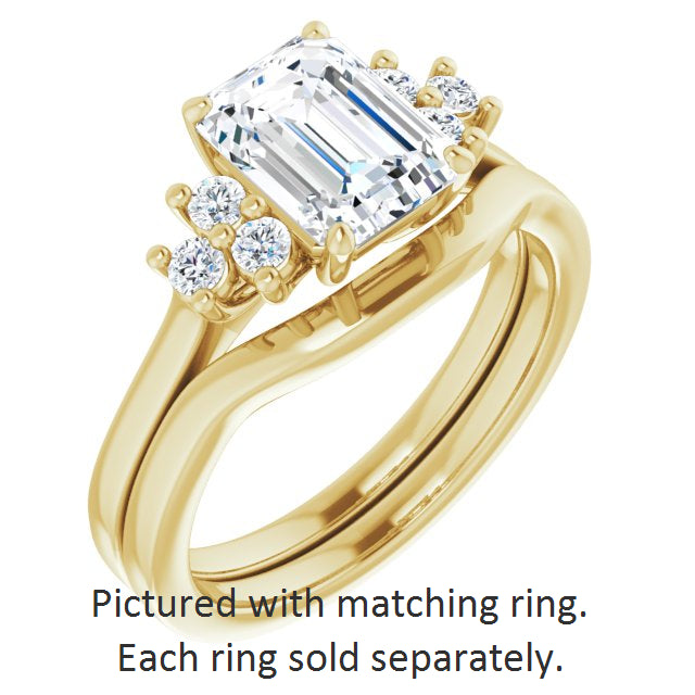 Center Stone Shape: Radiant Cut (as pictured with Emerald Cut). See this customizable ring set with other available center stone shapes here: customize setting.