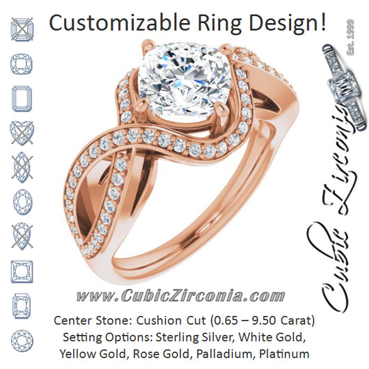Cubic Zirconia Engagement Ring- The Gwenyth (Customizable Cushion Cut Design with Twisting, Infinity-Shared Prong Split Band and Bypass Semi-Halo)