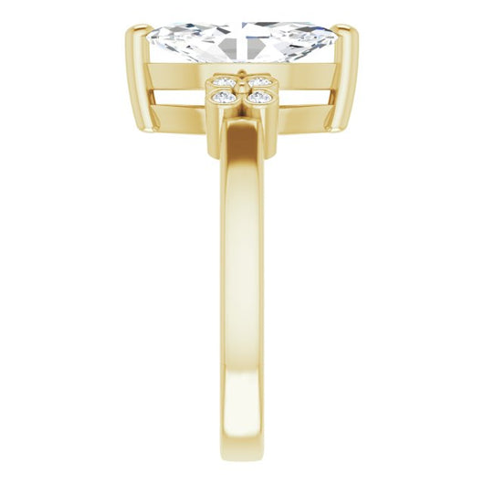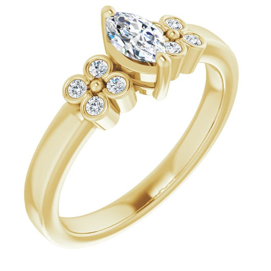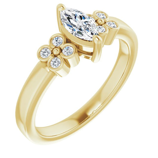10K Yellow Gold Customizable 9-stone Design with Marquise Cut Center and Complementary Quad Bezel-Accent Sets