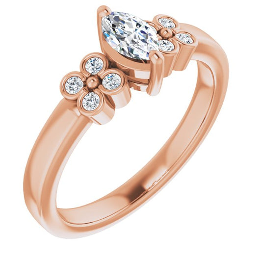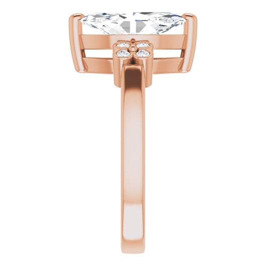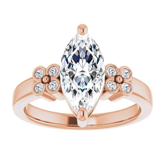 10K Rose Gold Customizable 9-stone Design with Marquise Cut Center and Complementary Quad Bezel-Accent Sets