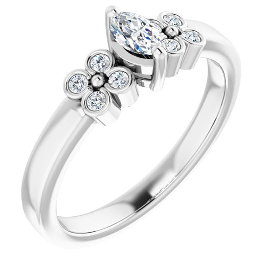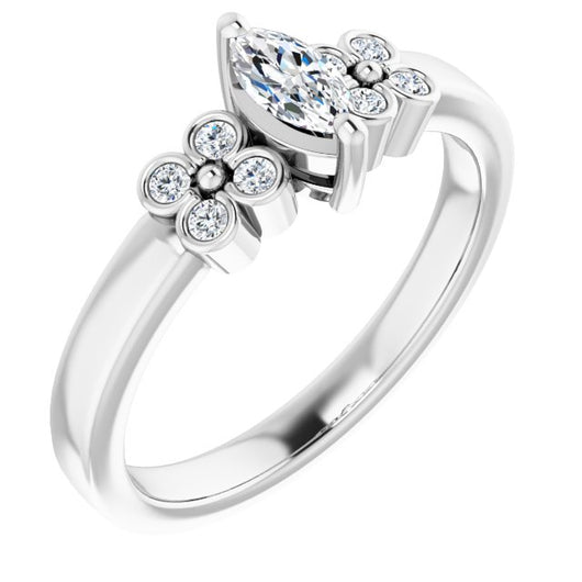 10K White Gold Customizable 9-stone Design with Marquise Cut Center and Complementary Quad Bezel-Accent Sets