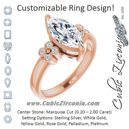 Cubic Zirconia Engagement Ring- The Heidi Grethe (Customizable 9-stone Design with Marquise Cut Center and Complementary Quad Bezel-Accent Sets)