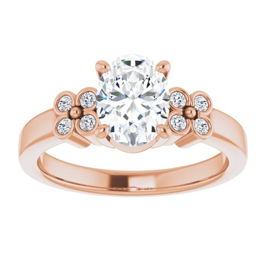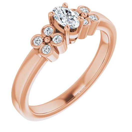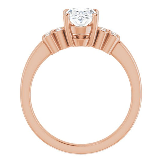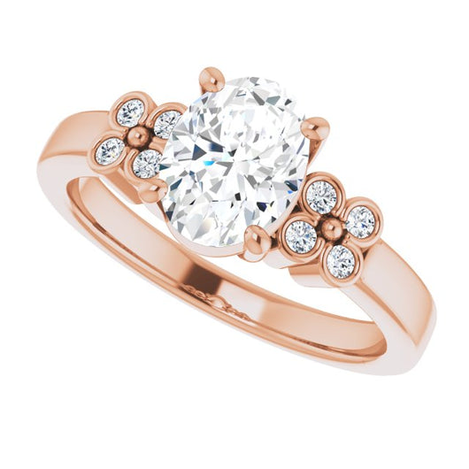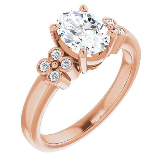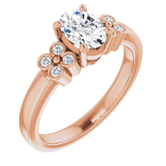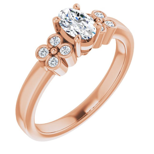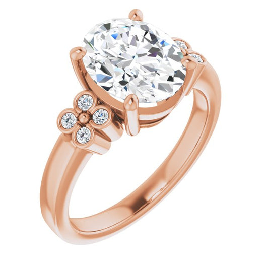 10K Rose Gold Customizable 9-stone Design with Oval Cut Center and Complementary Quad Bezel-Accent Sets