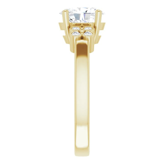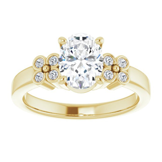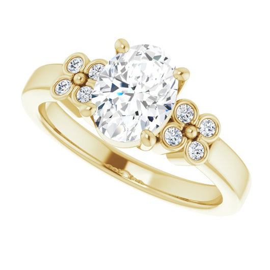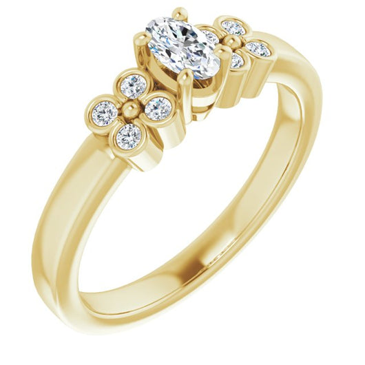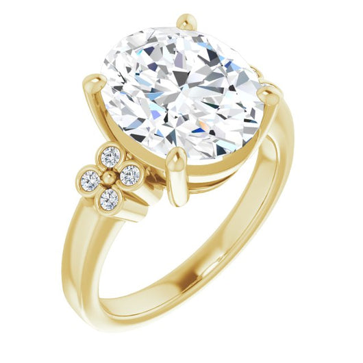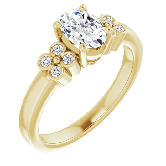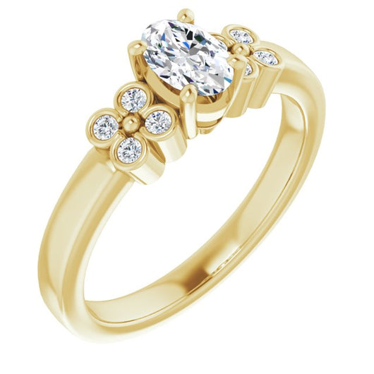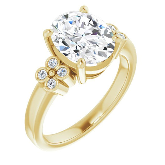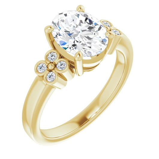 10K Yellow Gold Customizable 9-stone Design with Oval Cut Center and Complementary Quad Bezel-Accent Sets