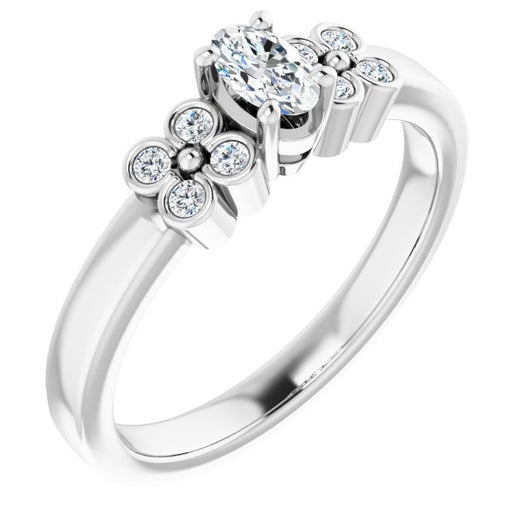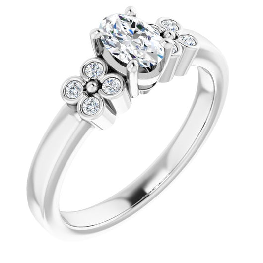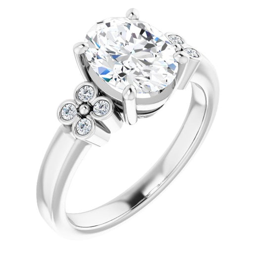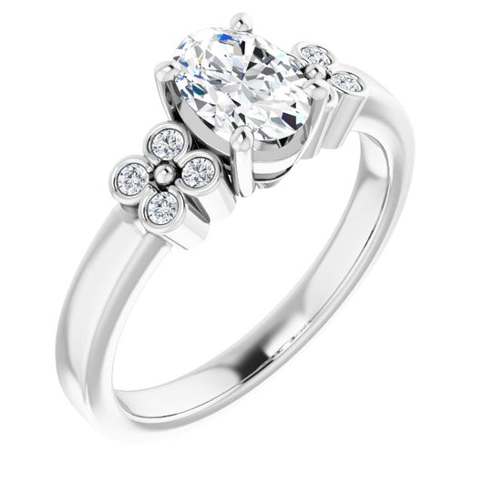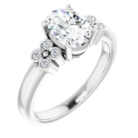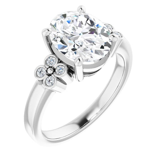 10K White Gold Customizable 9-stone Design with Oval Cut Center and Complementary Quad Bezel-Accent Sets