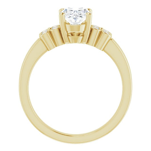 Center Stone Shape: Oval Cut (as pictured). See this customizable ring set with other available center stone shapes here: customize setting.