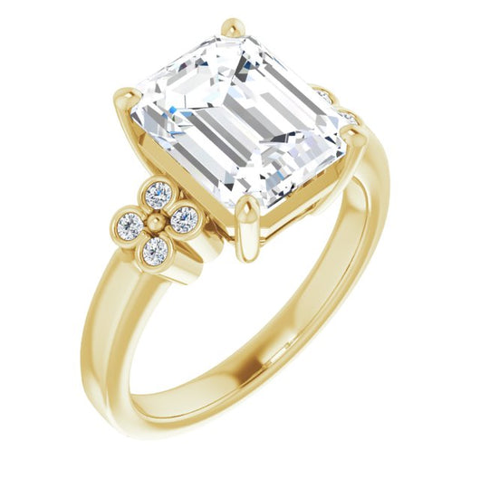 10K Yellow Gold Customizable 9-stone Design with Emerald/Radiant Cut Center and Complementary Quad Bezel-Accent Sets
