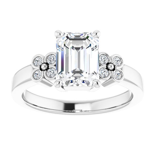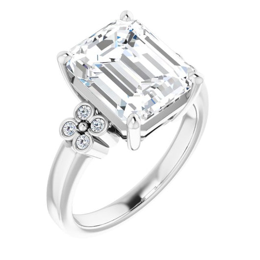 10K White Gold Customizable 9-stone Design with Emerald/Radiant Cut Center and Complementary Quad Bezel-Accent Sets