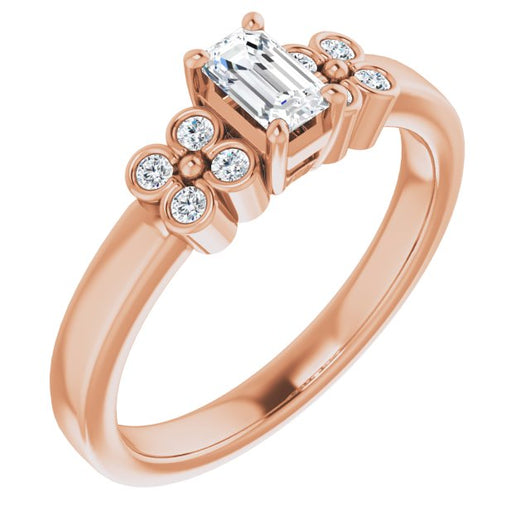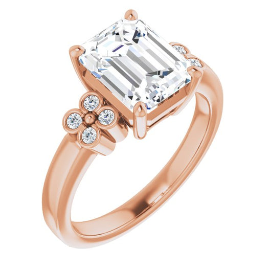 10K Rose Gold Customizable 9-stone Design with Emerald/Radiant Cut Center and Complementary Quad Bezel-Accent Sets