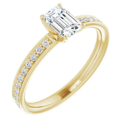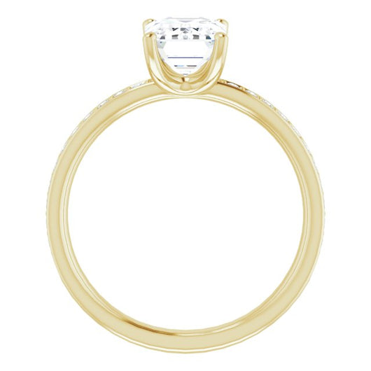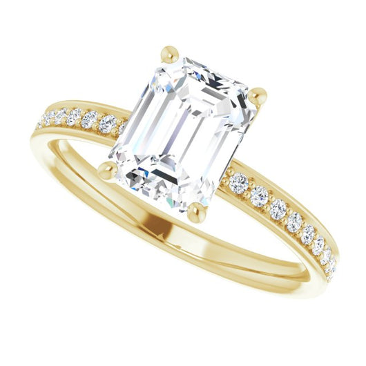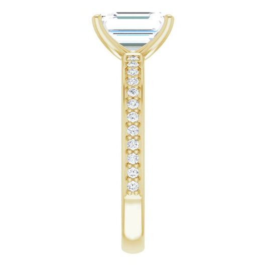 10K Yellow Gold Customizable Classic Prong-set Emerald/Radiant Cut Design with Shared Prong Band