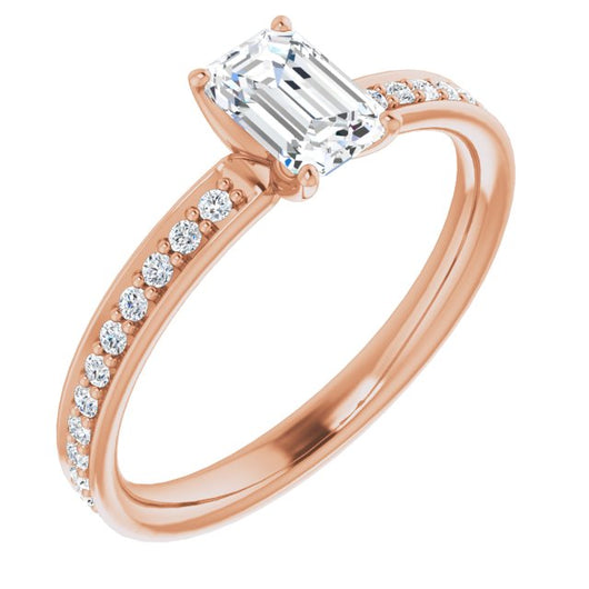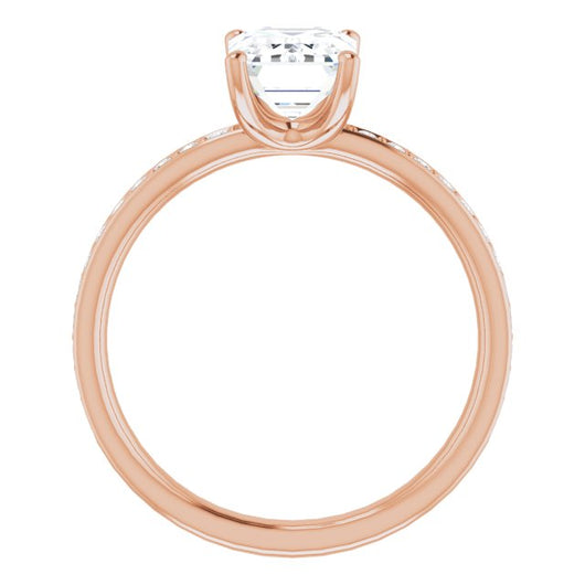 10K Rose Gold Customizable Classic Prong-set Emerald/Radiant Cut Design with Shared Prong Band