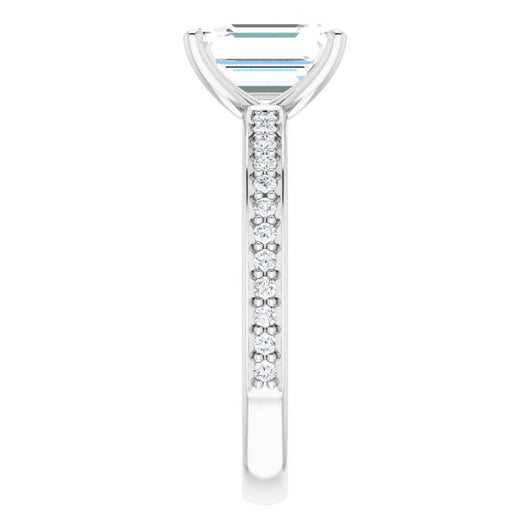 10K White Gold Customizable Classic Prong-set Emerald/Radiant Cut Design with Shared Prong Band