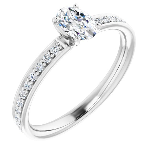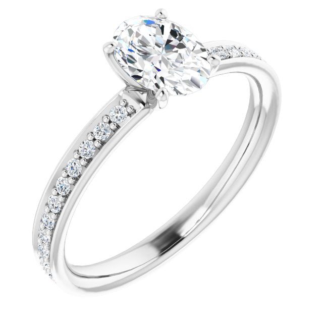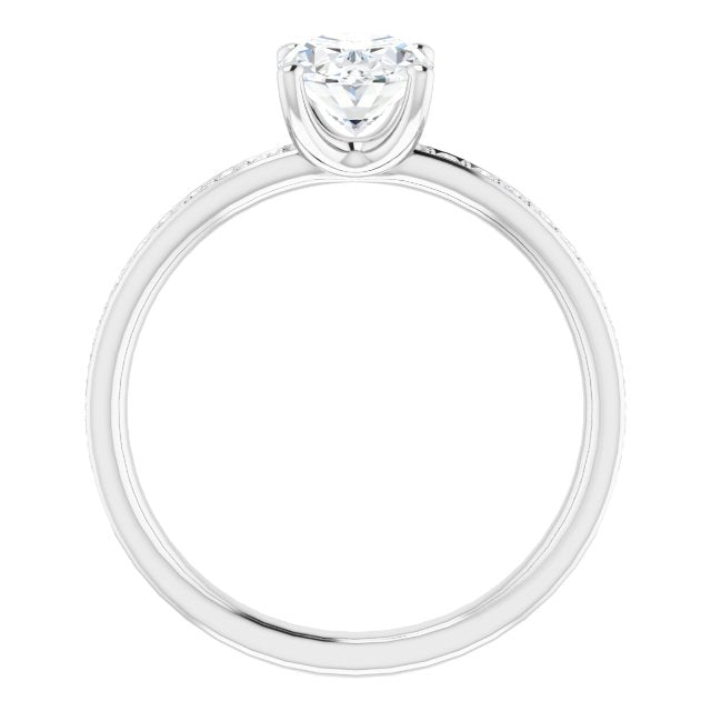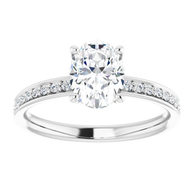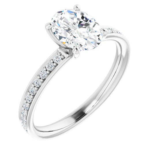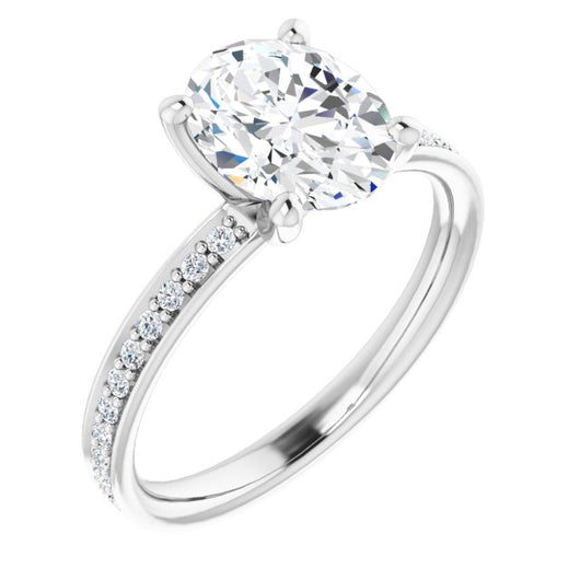 14K White Gold Customizable Classic Prong-set Oval Cut Design with Shared Prong Band