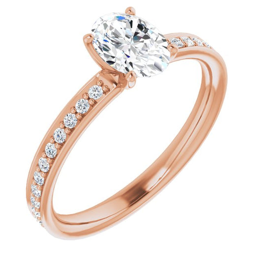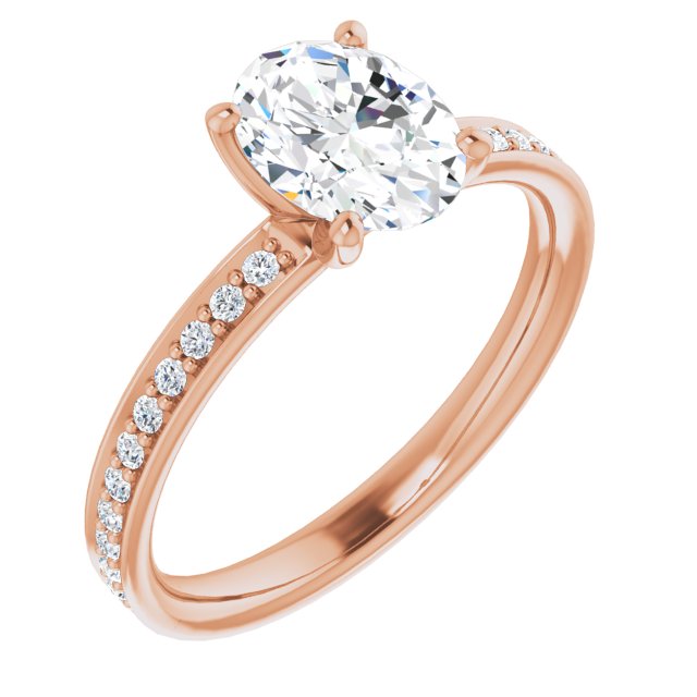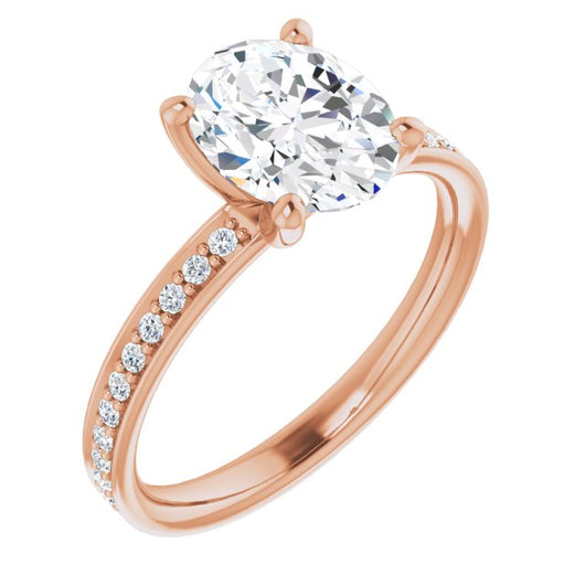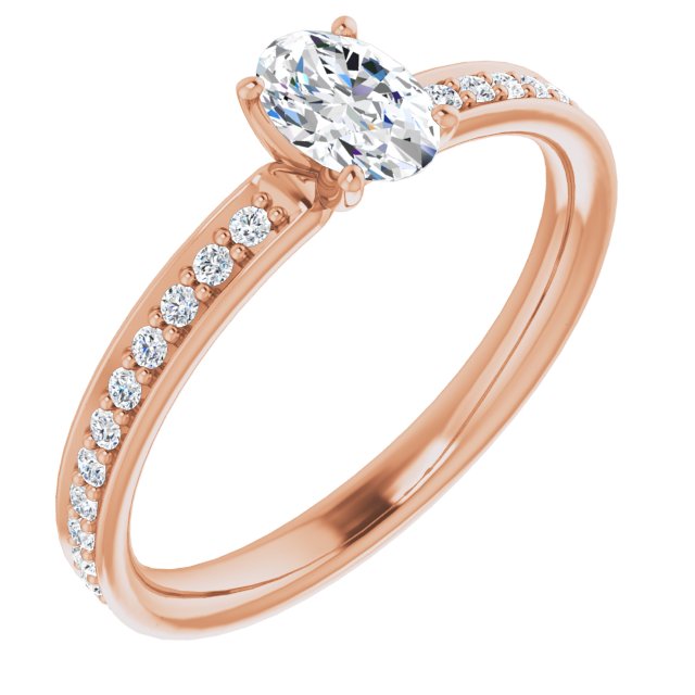 10K Rose Gold Customizable Classic Prong-set Oval Cut Design with Shared Prong Band