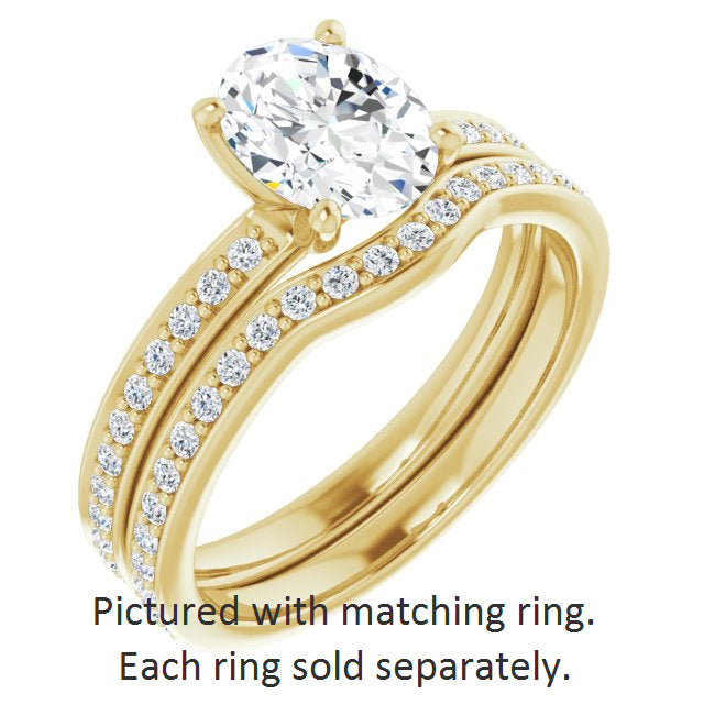 Center Stone Shape: Oval Cut (as pictured). See this customizable ring set with other available center stone shapes here: customize setting.