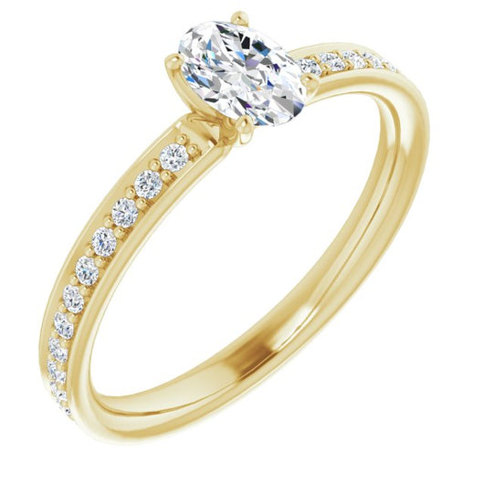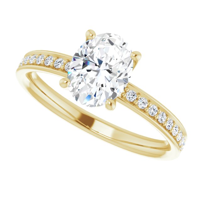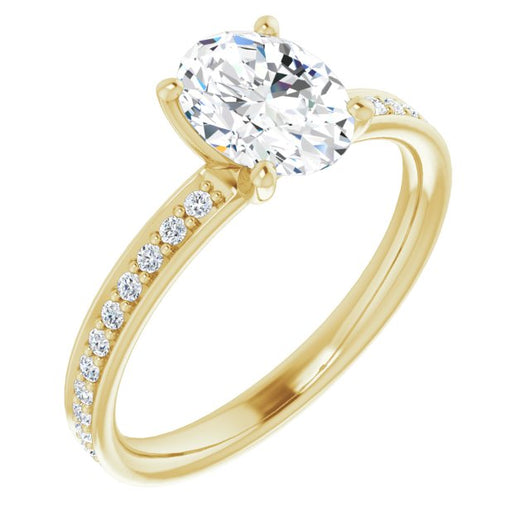14K Yellow Gold Customizable Classic Prong-set Oval Cut Design with Shared Prong Band