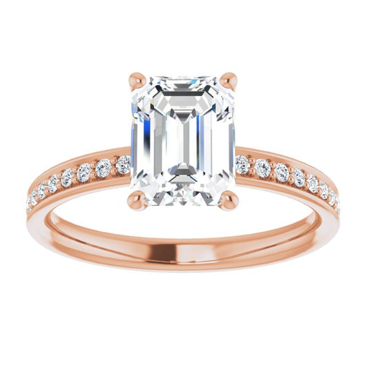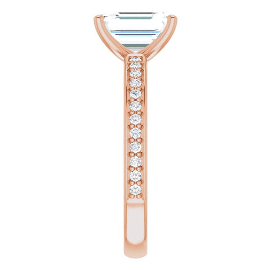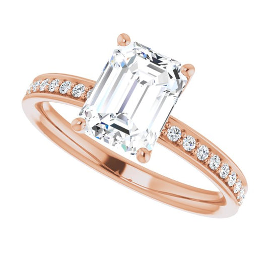 10K Rose Gold Customizable Classic Prong-set Emerald/Radiant Cut Design with Shared Prong Band