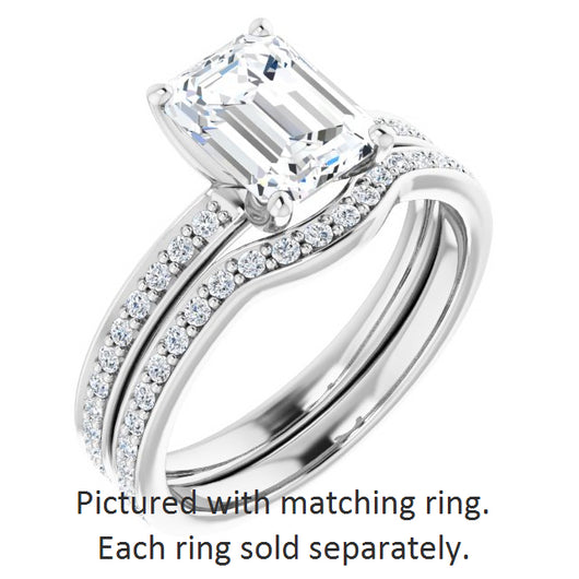 Center Stone Shape: Radiant Cut (as pictured with Emerald Cut). See this customizable ring set with other available center stone shapes here: customize setting.
