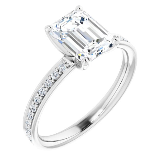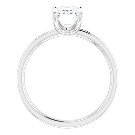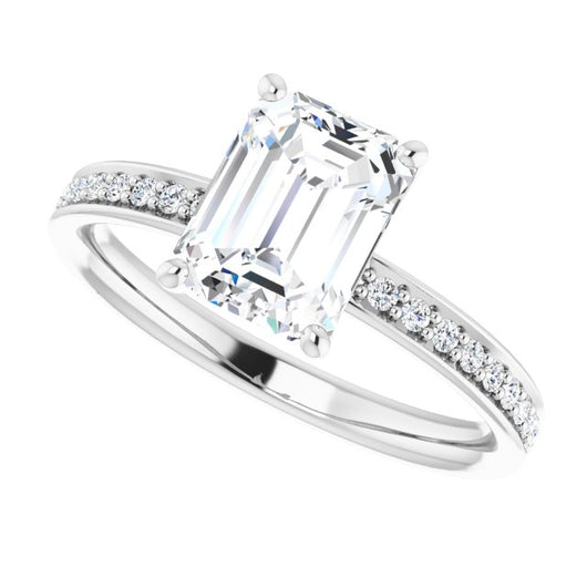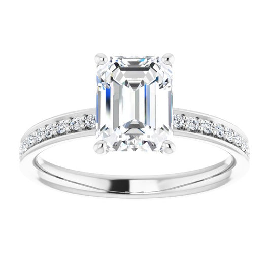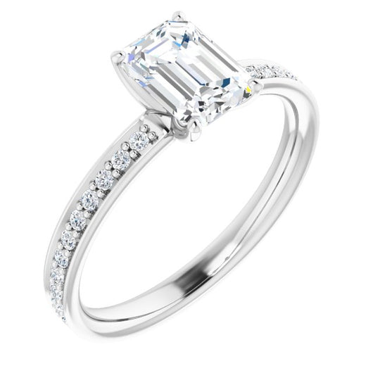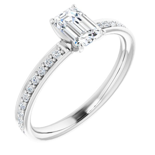 10K White Gold Customizable Classic Prong-set Emerald/Radiant Cut Design with Shared Prong Band