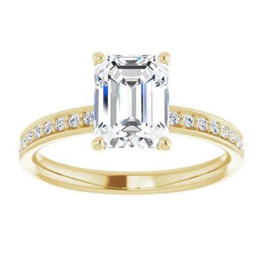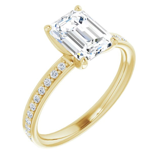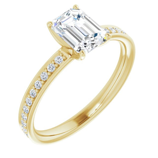 10K Yellow Gold Customizable Classic Prong-set Emerald/Radiant Cut Design with Shared Prong Band