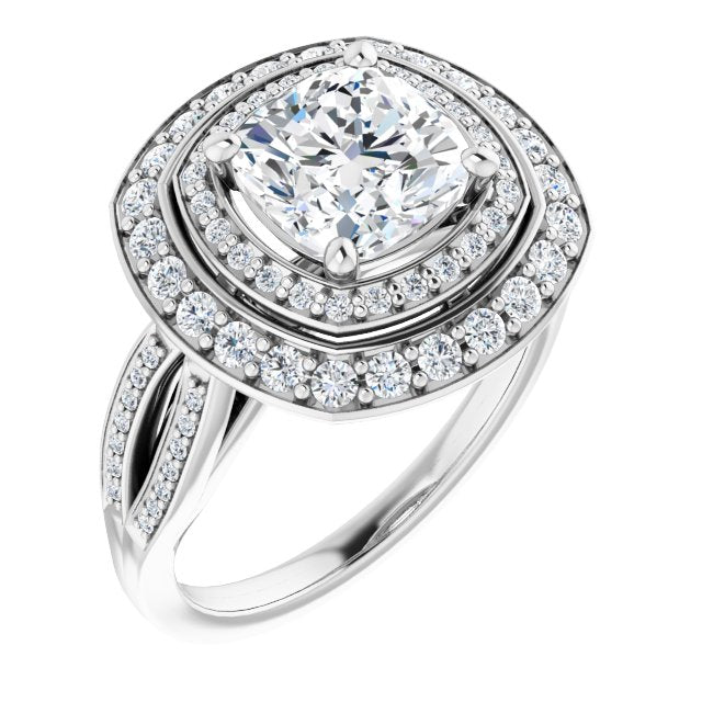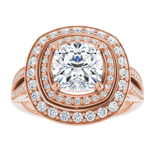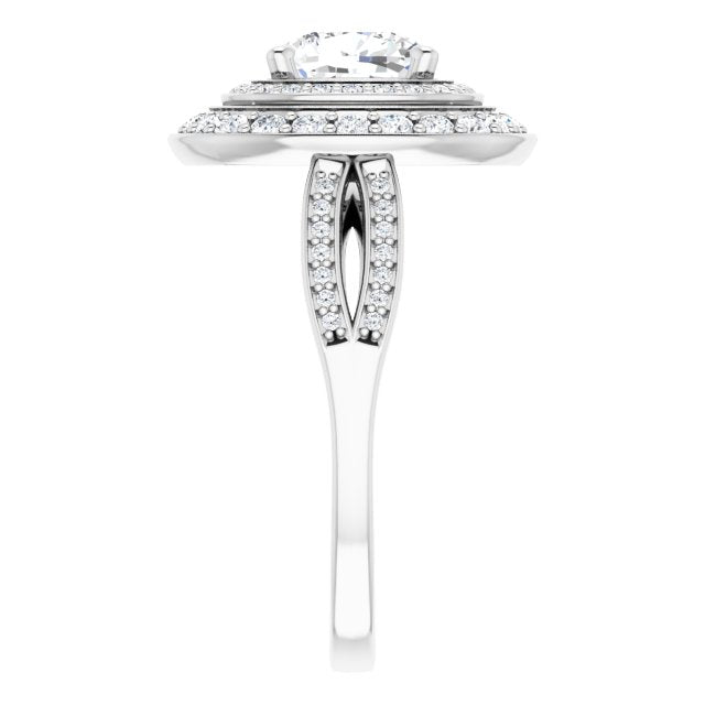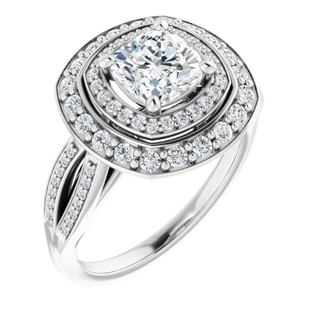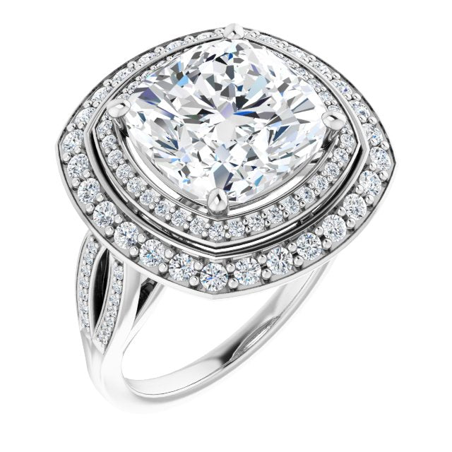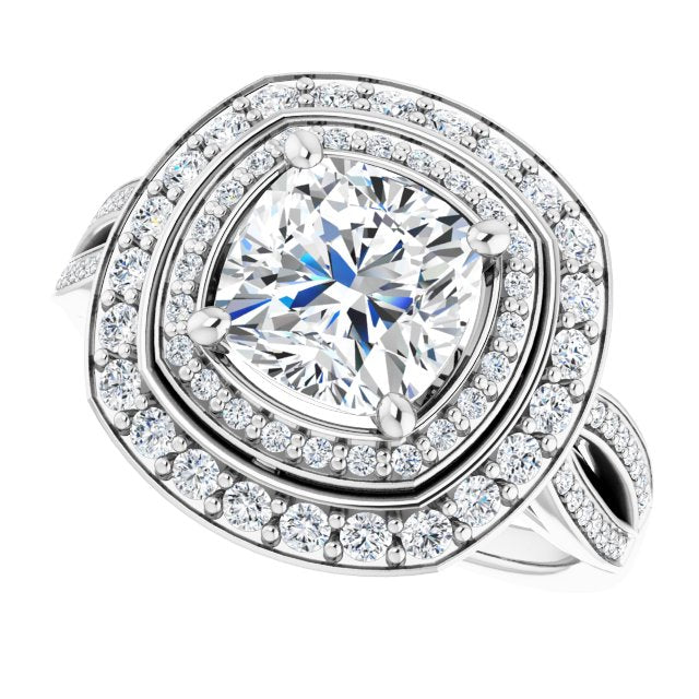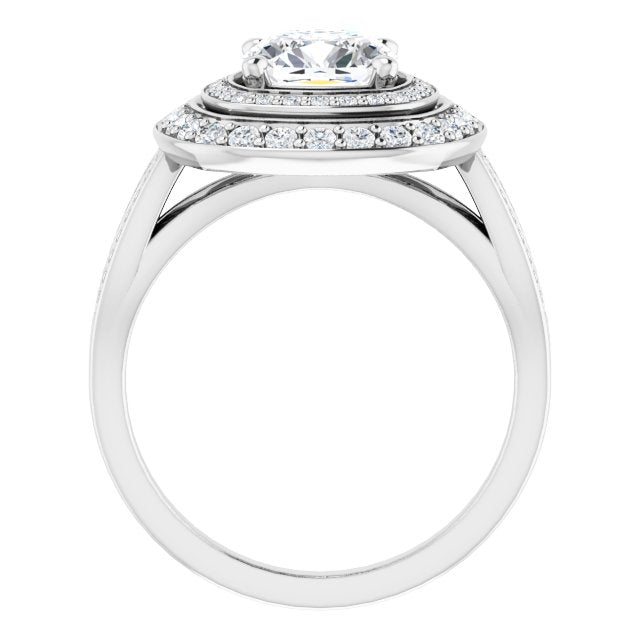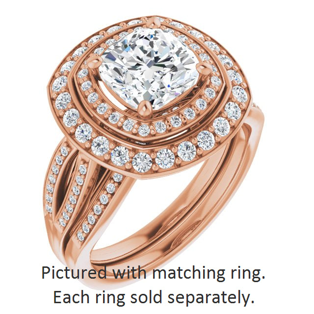 Center Stone Shape: Cushion Cut (as pictured). See this customizable ring set with other available center stone shapes here: customize setting.