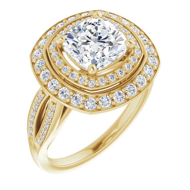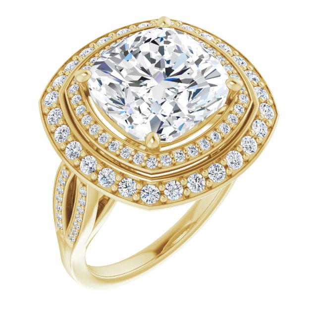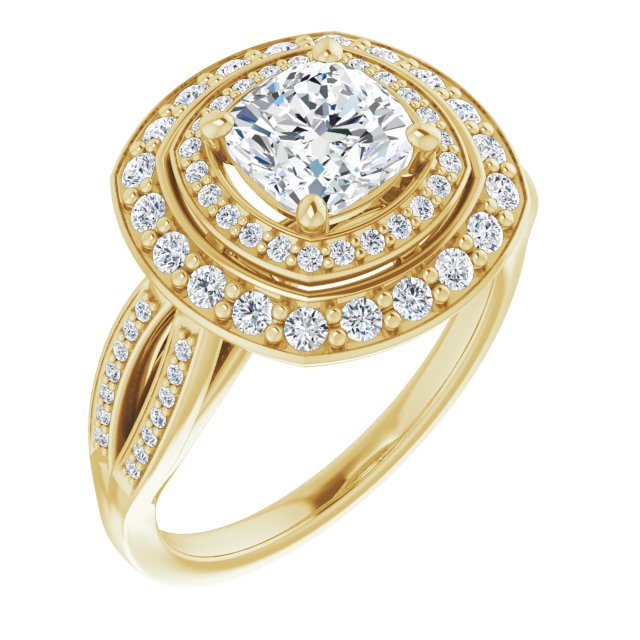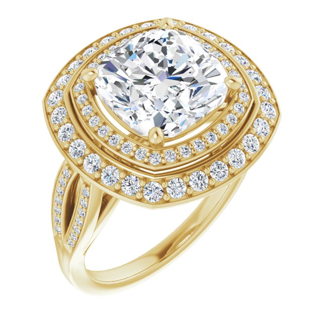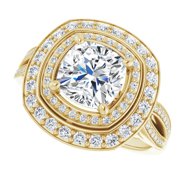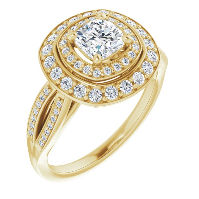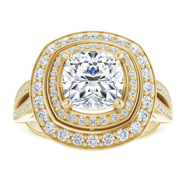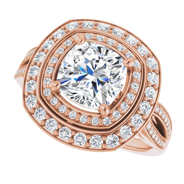 Center Stone Shape: Cushion Cut (as pictured). See this customizable ring set with other available center stone shapes here: customize setting.