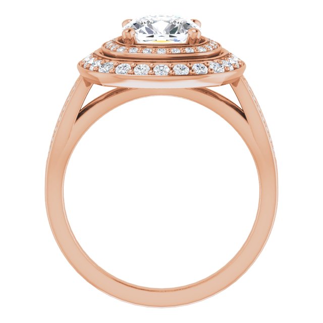 * Your ring’s total carat weight (TCW), band width, weight in grams, and/or number and size of accent, pavé, or halo stones will vary up or down depending on your choice of customizable center stone shape and size, precious metal type, and finger ring size via the drop-down options provided.