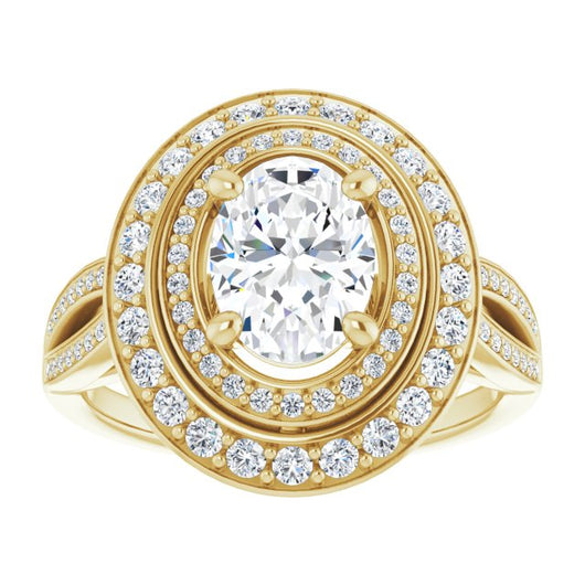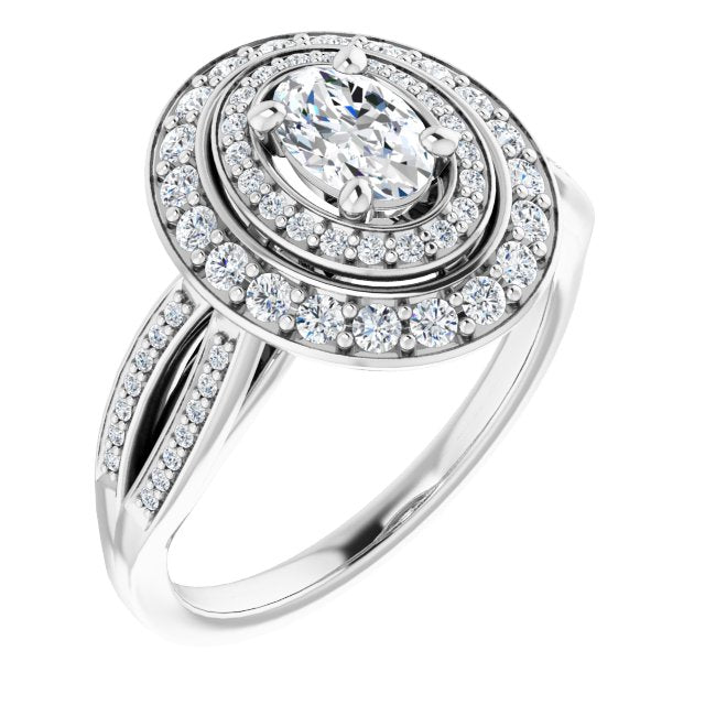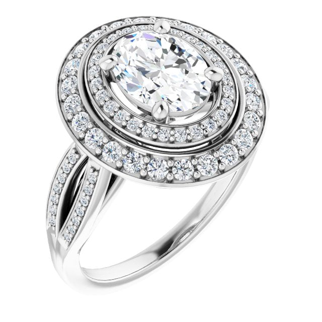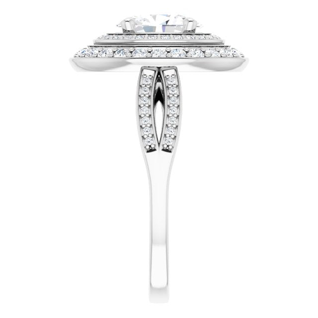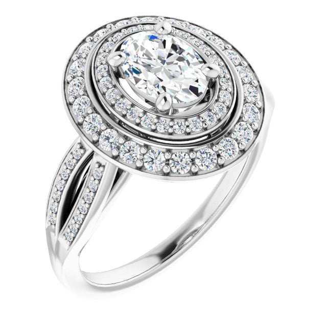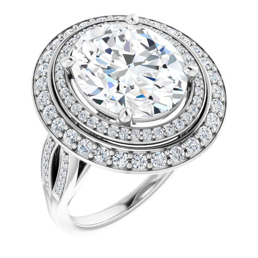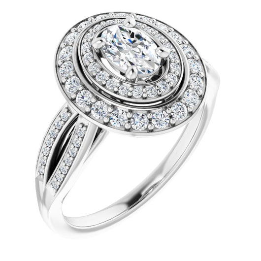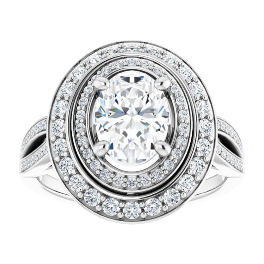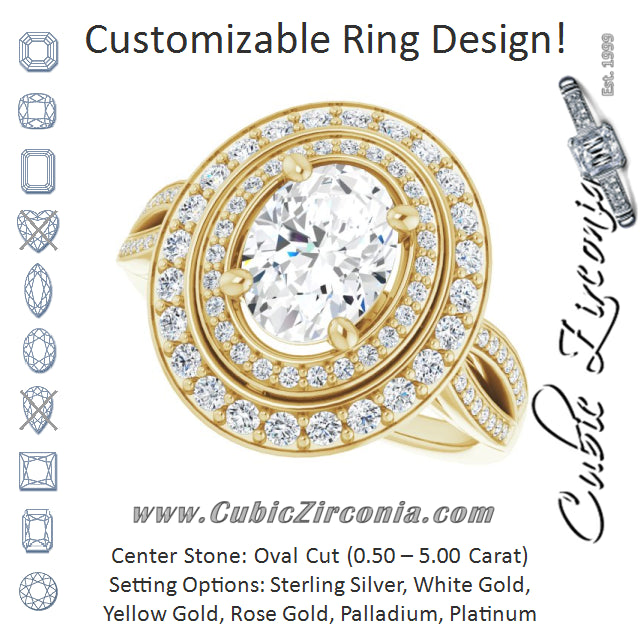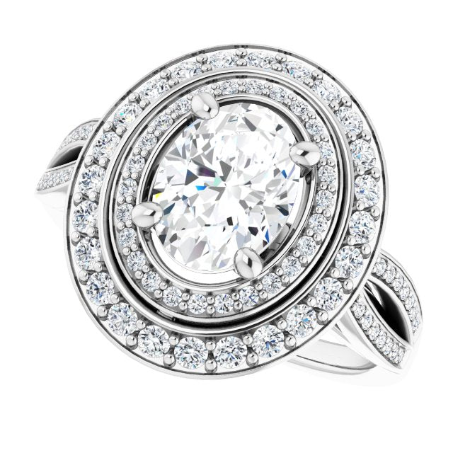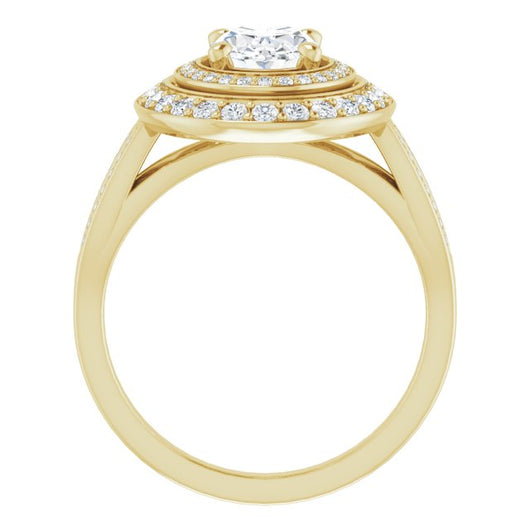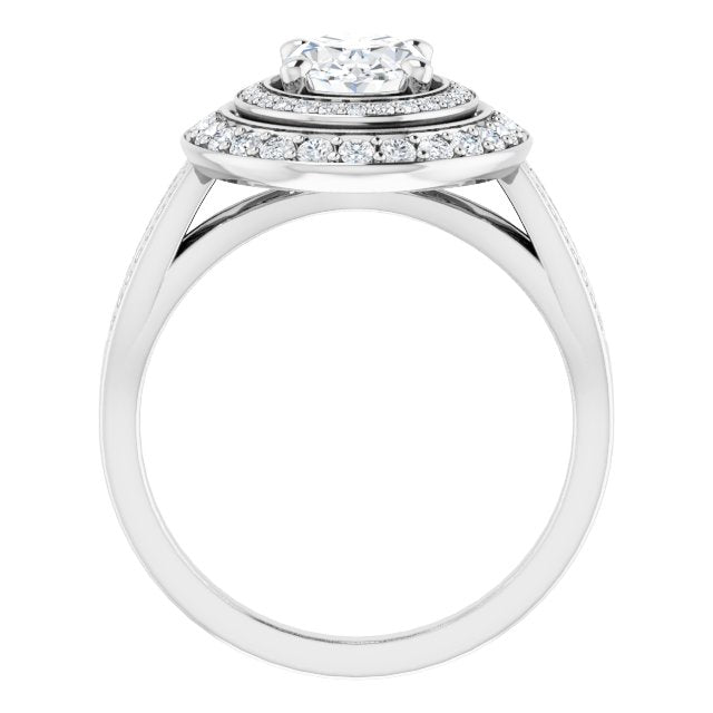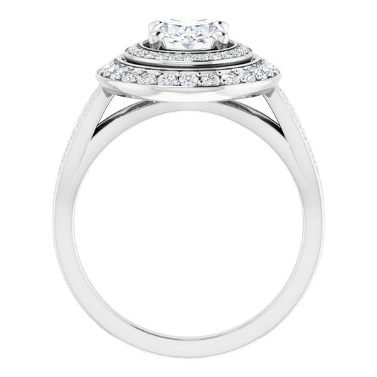 Center Stone Shape: Oval Cut (as pictured). See this customizable ring set with other available center stone shapes here: customize setting.