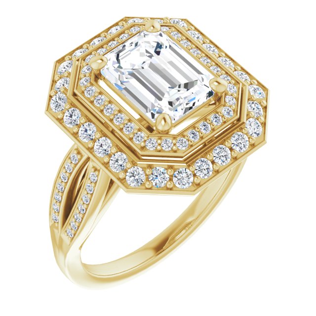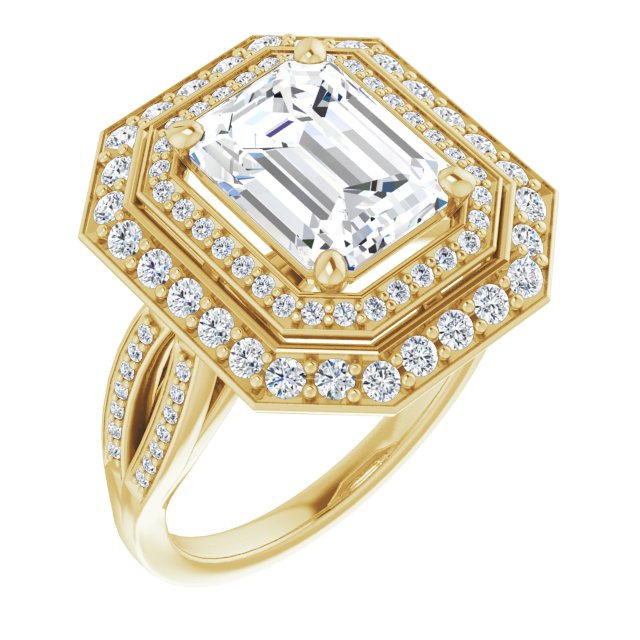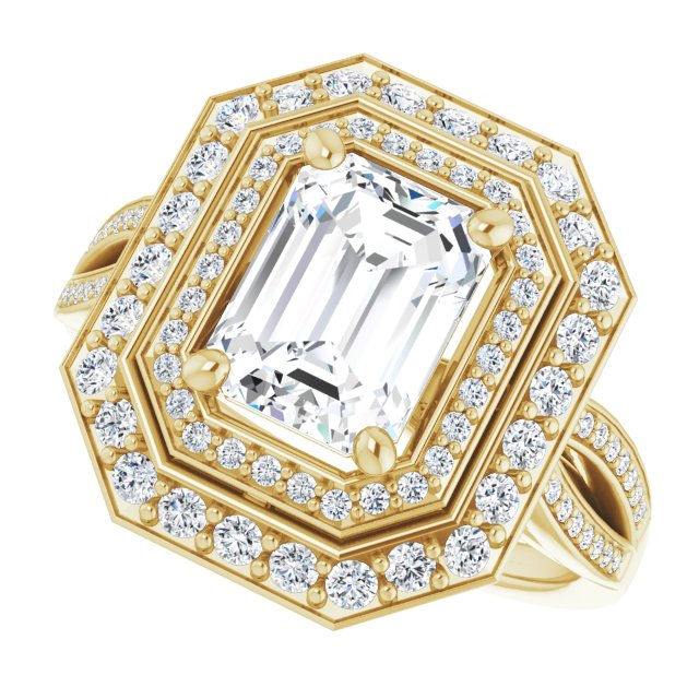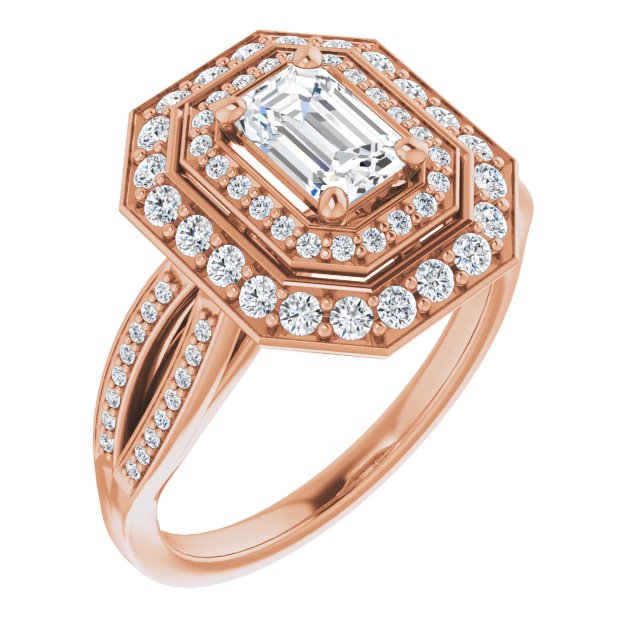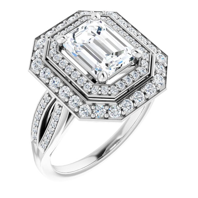 Center Stone Shape: Radiant Cut (as pictured with Emerald Cut). See this customizable ring set with other available center stone shapes here: customize setting.