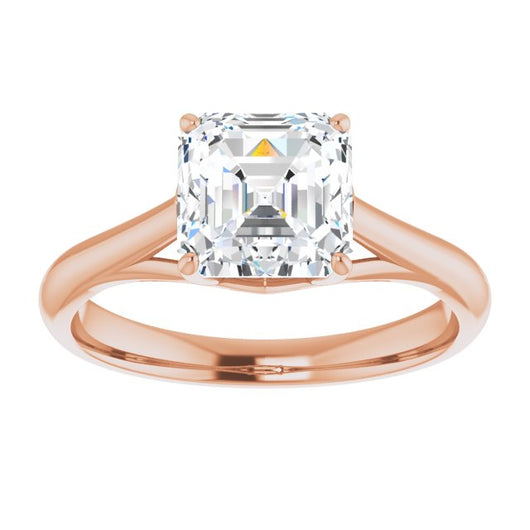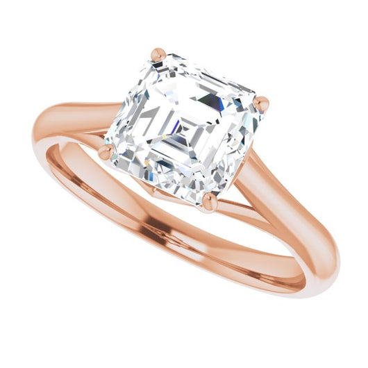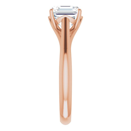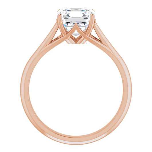 10K Rose Gold Customizable Asscher Cut Solitaire with Crosshatched Prong Basket