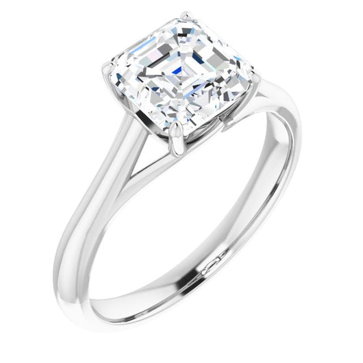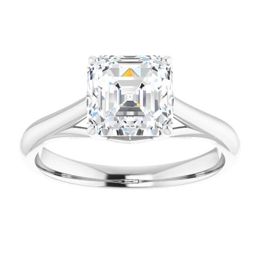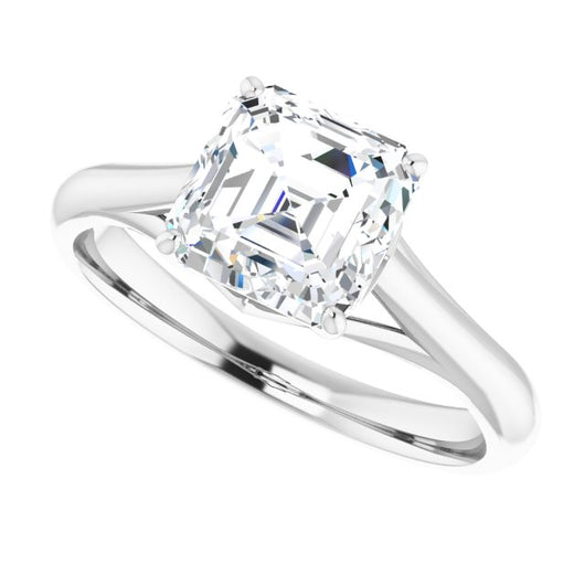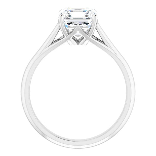 10K White Gold Customizable Asscher Cut Solitaire with Crosshatched Prong Basket