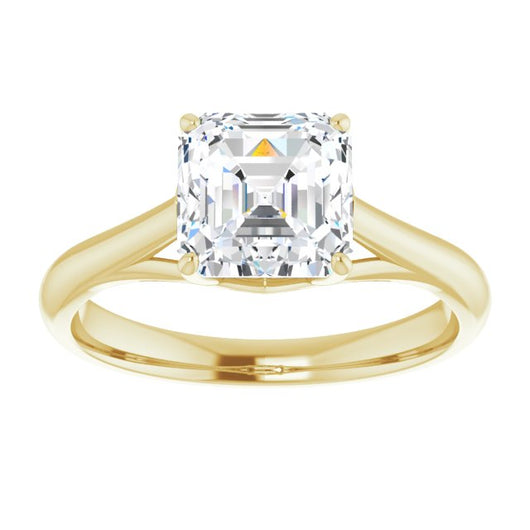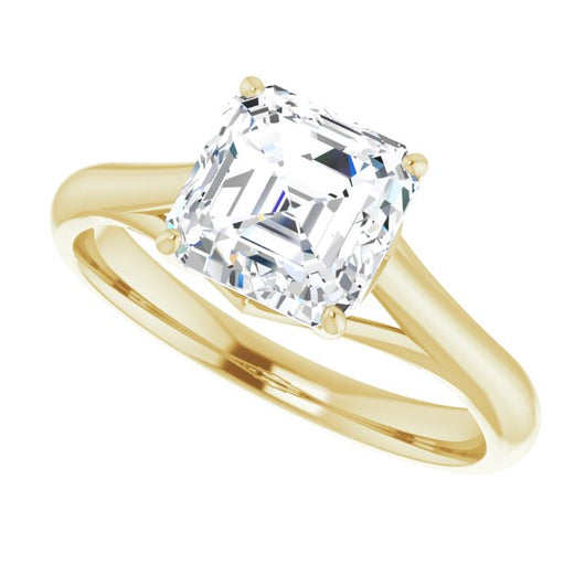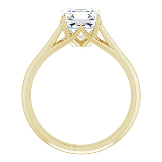 10K Yellow Gold Customizable Asscher Cut Solitaire with Crosshatched Prong Basket