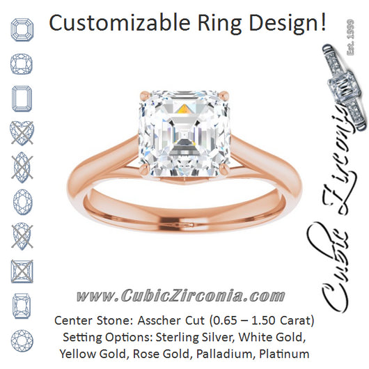 Cubic Zirconia Engagement Ring- The Holly (Customizable Asscher Cut Solitaire with Crosshatched Prong Basket)