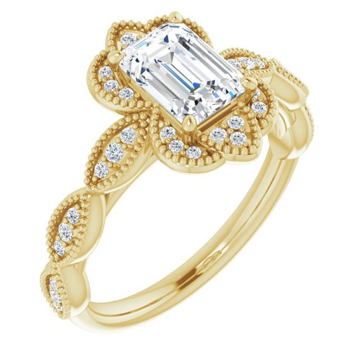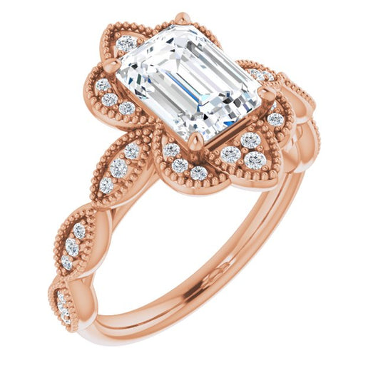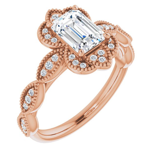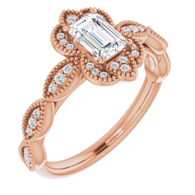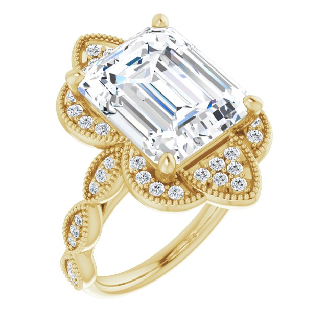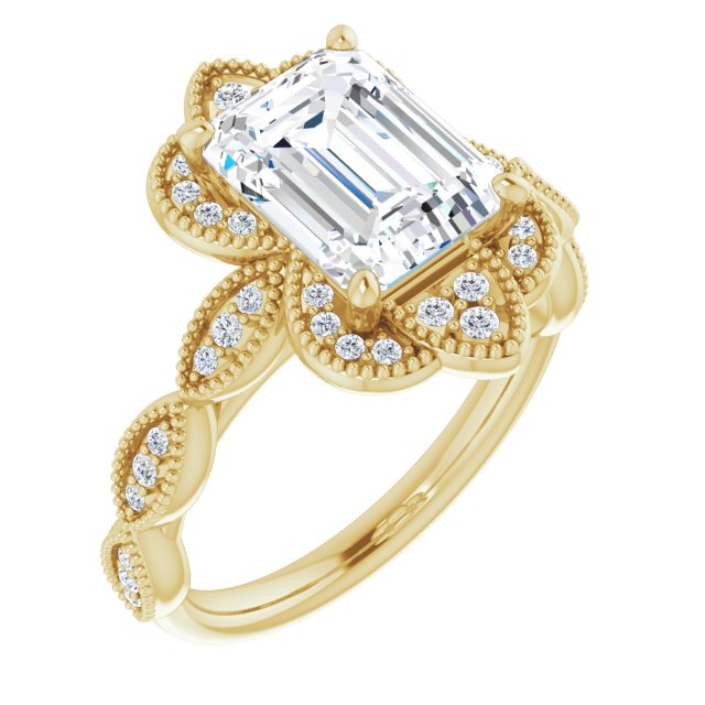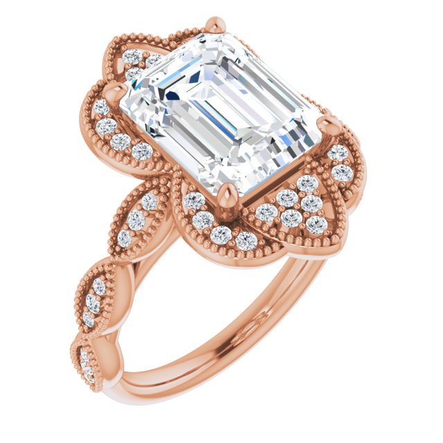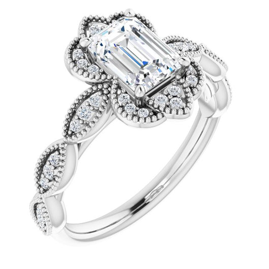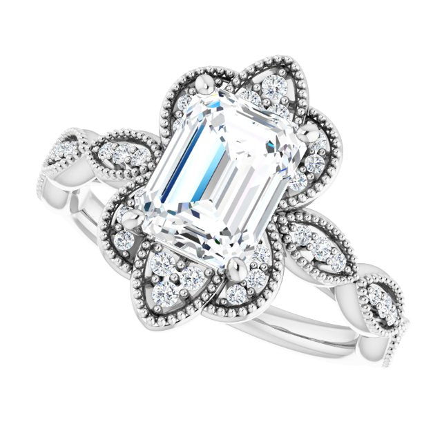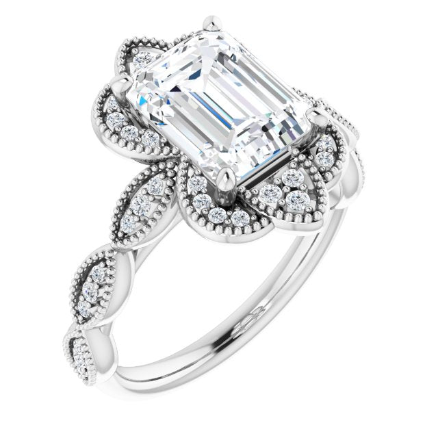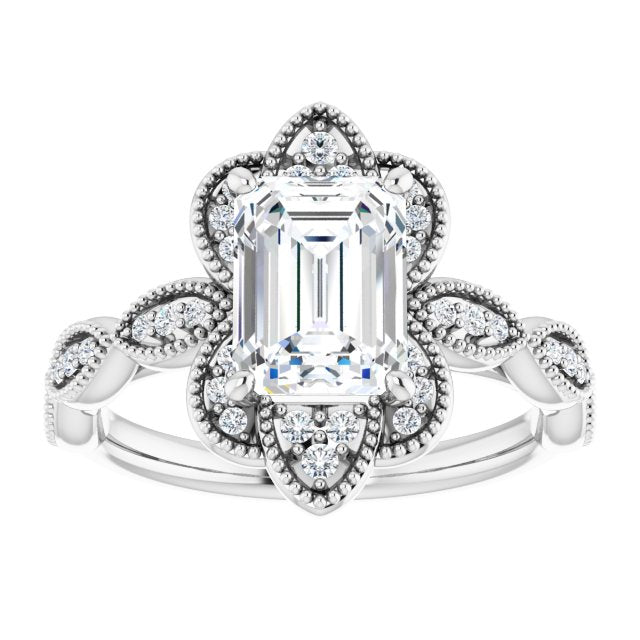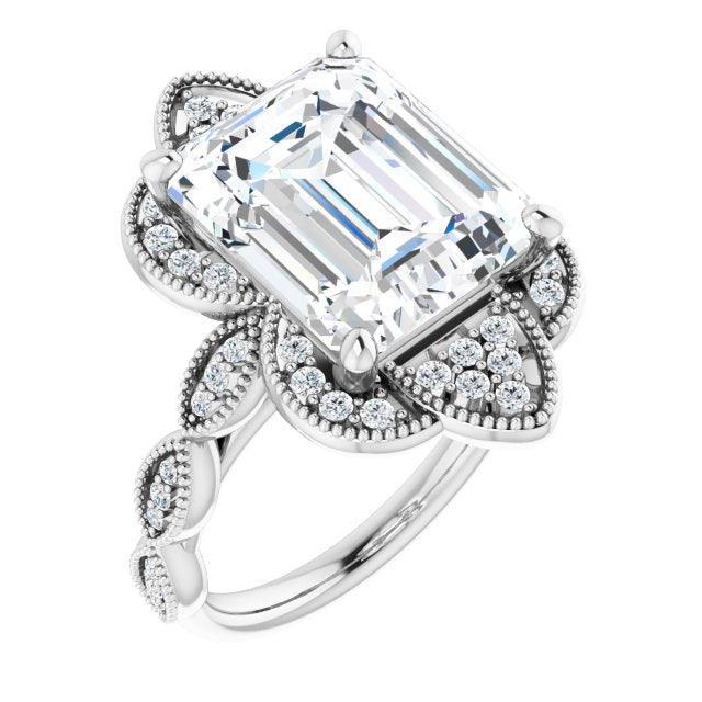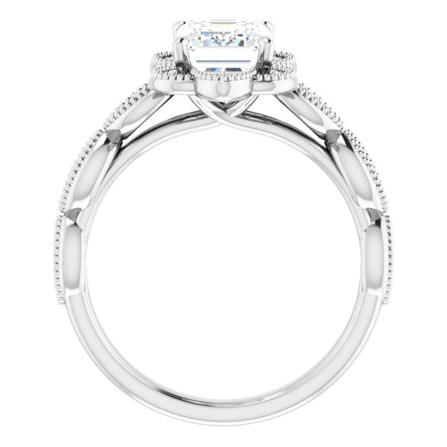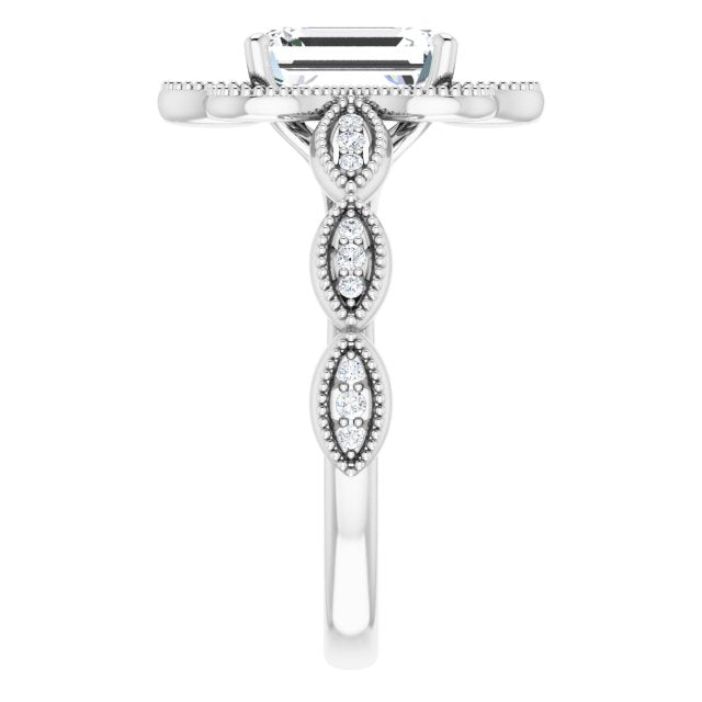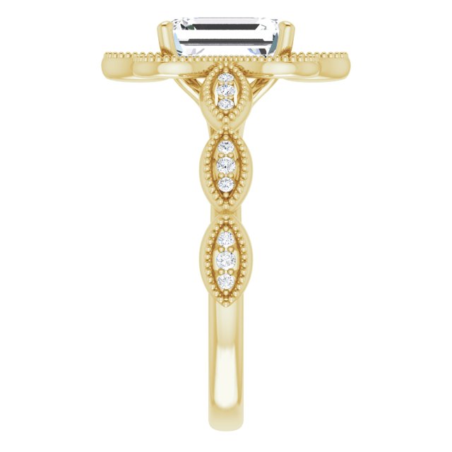 Center Stone Shape: Radiant Cut (as pictured with Emerald Cut). See this customizable ring set with other available center stone shapes here: customize setting.