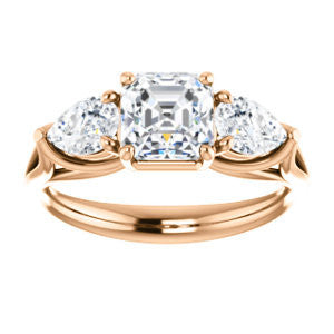 Cubic Zirconia Engagement Ring- The Ila (Customizable 3-stone Design with Asscher Cut Center, Pear Accents and Split Band)