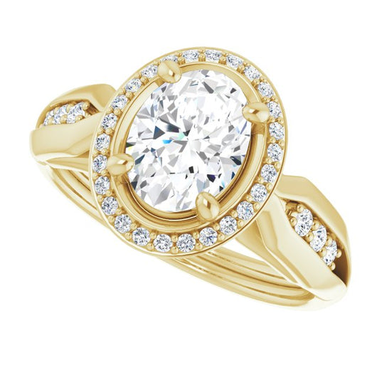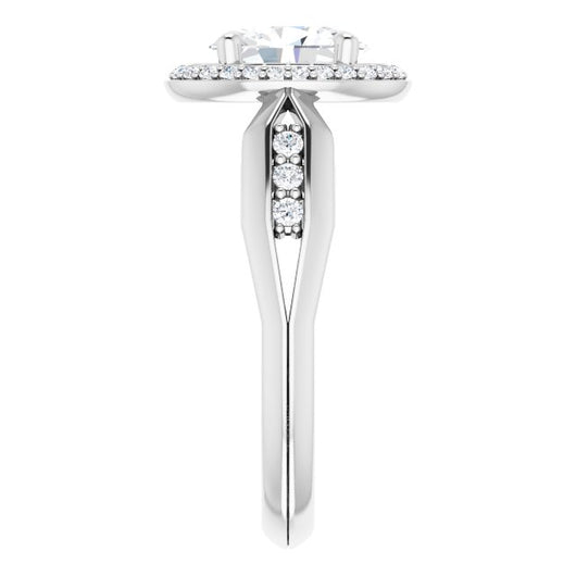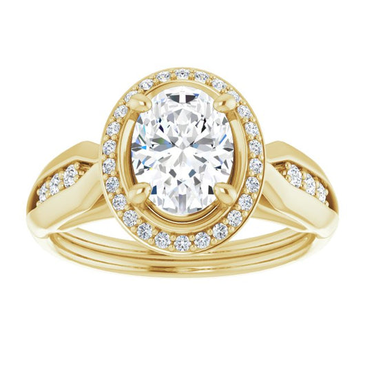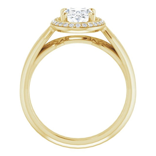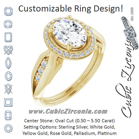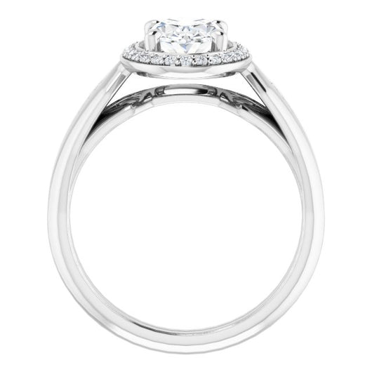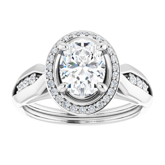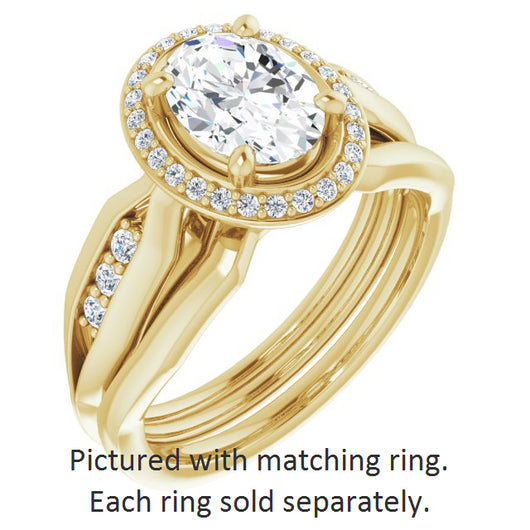 Center Stone Shape: Oval Cut (as pictured). See this customizable ring set with other available center stone shapes here: customize setting.