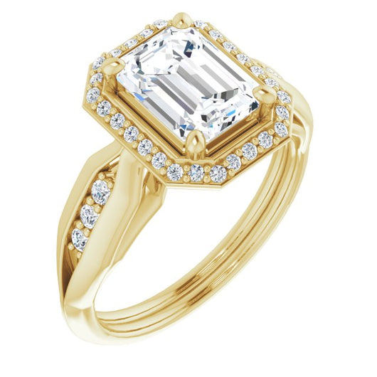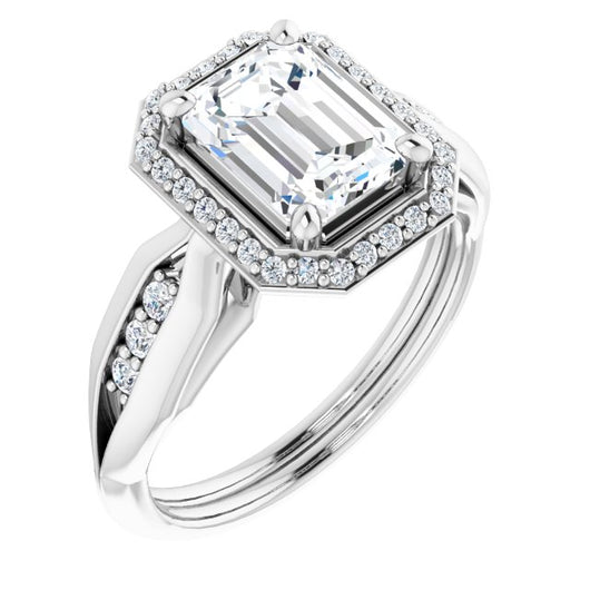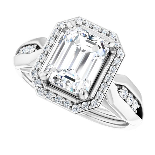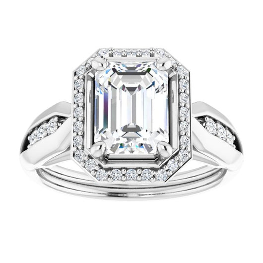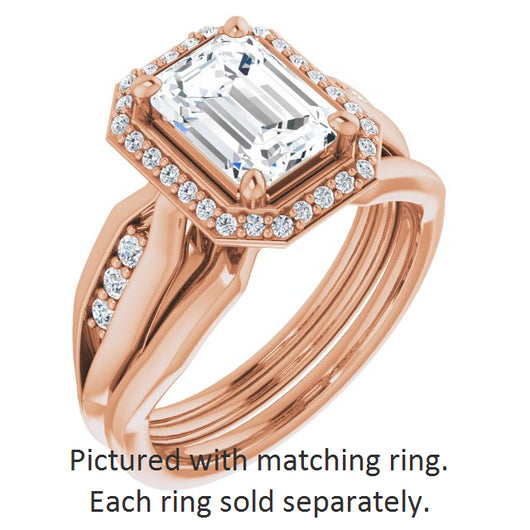 Center Stone Shape: Radiant Cut (as pictured with Emerald Cut). See this customizable ring set with other available center stone shapes here: customize setting.
