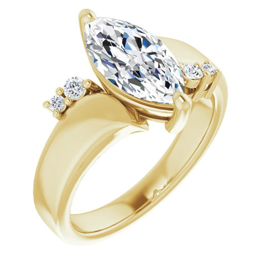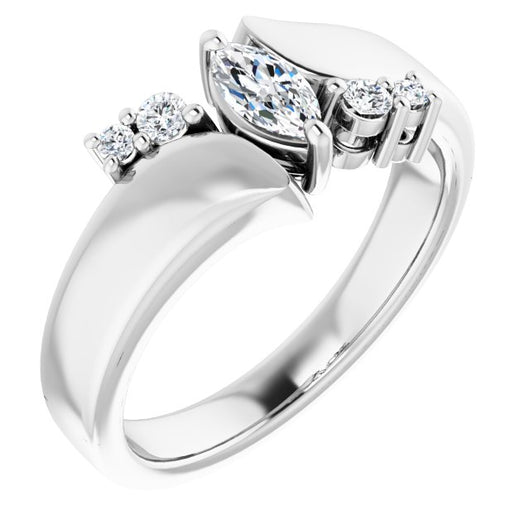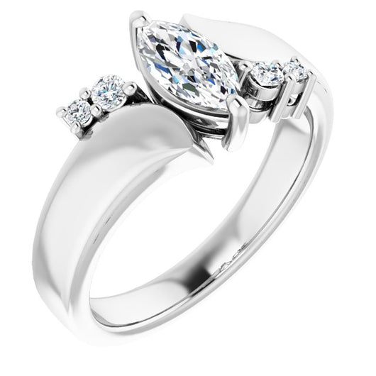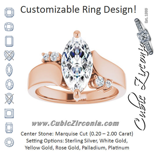Center Stone Shape: Marquise Cut (as pictured). See this customizable ring set with other available center stone shapes here: customize setting.