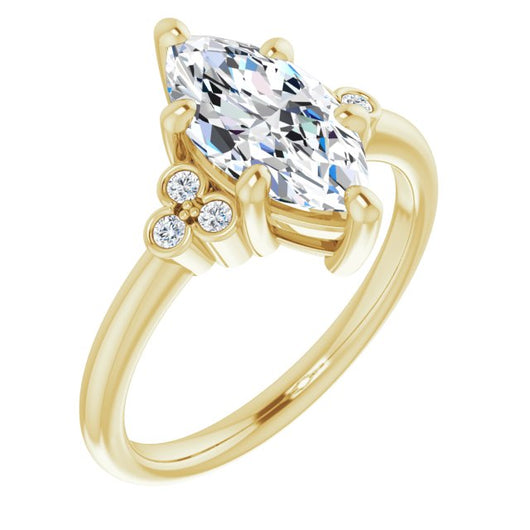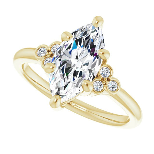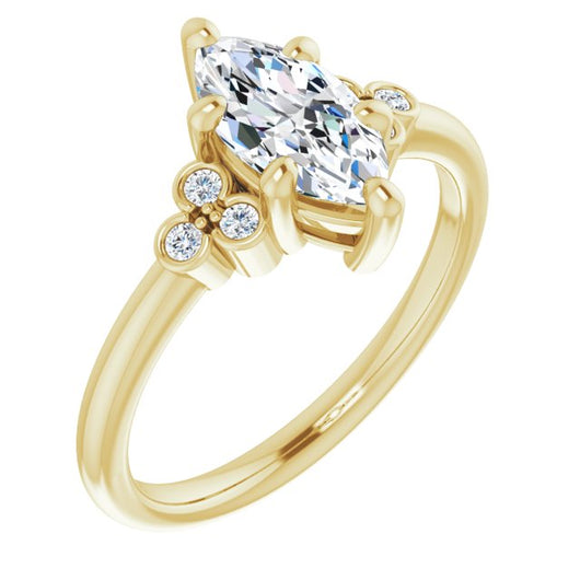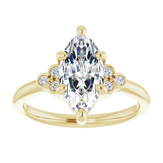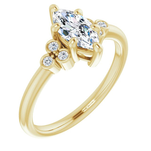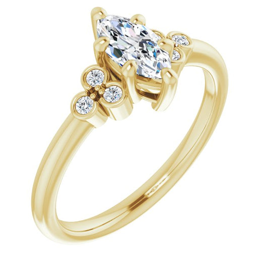 10K Yellow Gold Customizable 7-stone Marquise Cut Center with Round-Bezel Side Stones