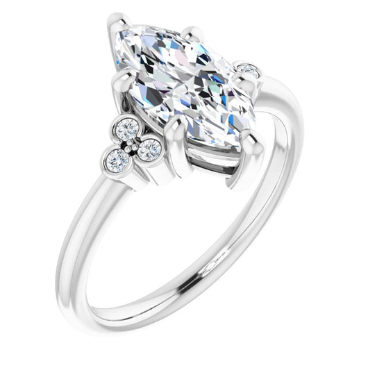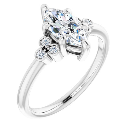10K White Gold Customizable 7-stone Marquise Cut Center with Round-Bezel Side Stones