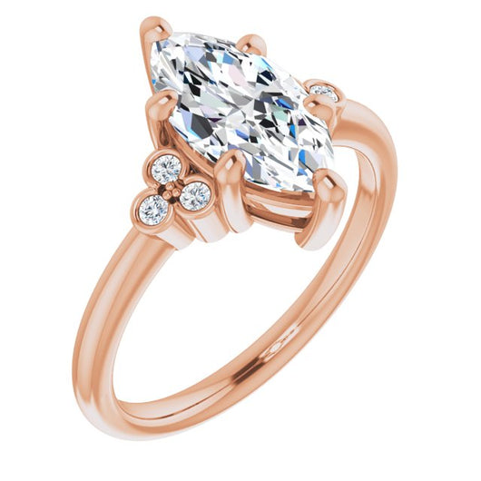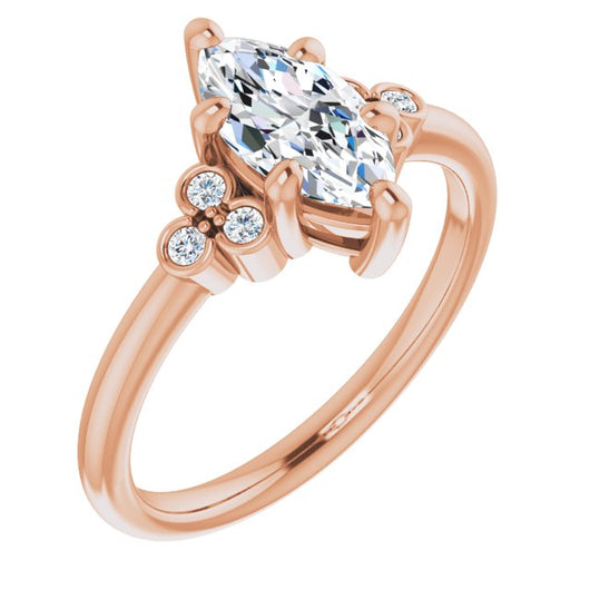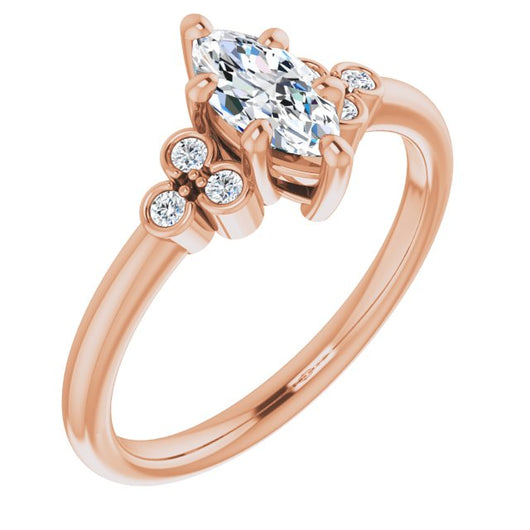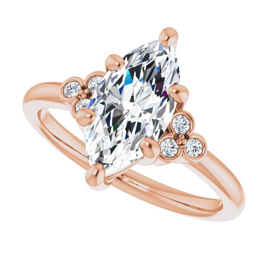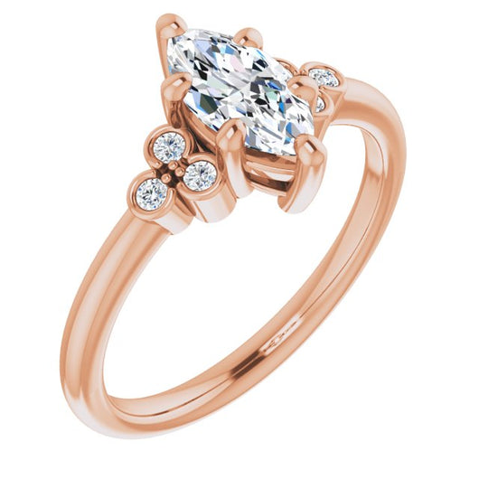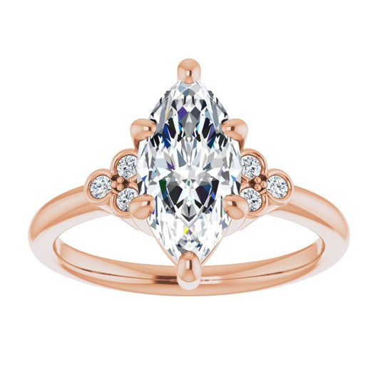 10K Rose Gold Customizable 7-stone Marquise Cut Center with Round-Bezel Side Stones